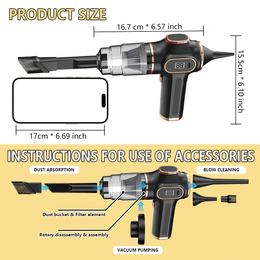 Introduction : Optez pour un aspirateur sans fil puissant capable de nettoyer efficacement tous vos espaces. Avec sa puissance d’aspiration de 18000Pa et sa fonction 2-en-1 (aspiration et souffleur), cet appareil compact vous permet de nettoyer rapidement votre maison, voiture ou bureau, sans contrainte de câble.