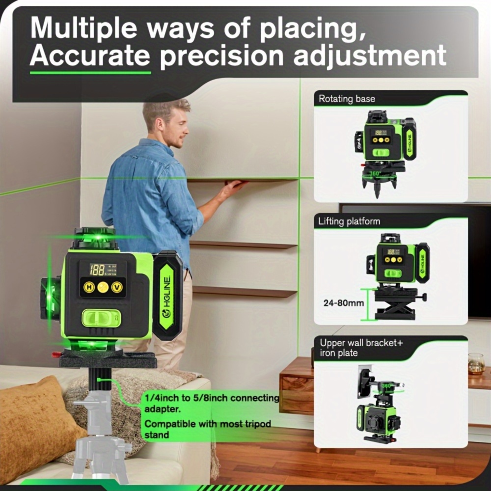 Introduction : Le niveau laser 360 vert est l’outil indispensable pour des alignements précis et rapides. Grâce à ses 16 lignes laser 4D et sa projection à 360°, il permet de travailler efficacement sur tous vos projets : construction, rénovation ou décoration. Avec son système auto-nivelant, il garantit une précision optimale sans effort.